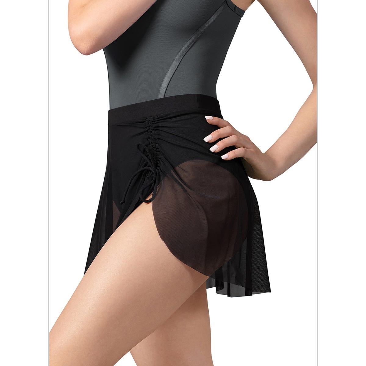 They are correct—on the costume! The diamond-shaped embellishment at the back of the silky stocking is absolutely stunning, catching the light with every movement.