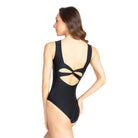 The open back design features a low scoop, offering plenty of breathability to help keep you cool during even your most intense rehearsals. Unique to Mo, the back is highlighted by an enthralling looped cross design in the mid back area.