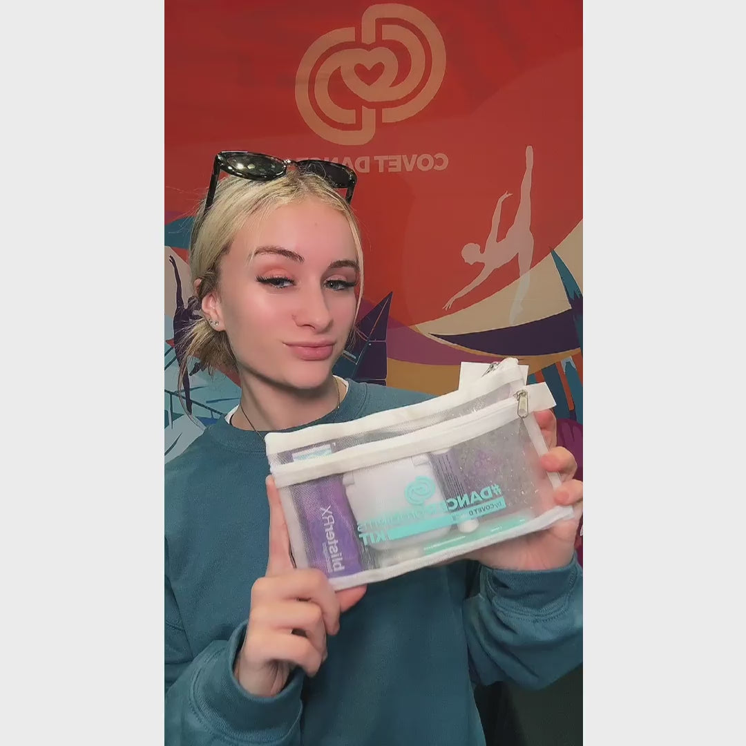 The Dancer Problems Kit is a "magic bag" of remedies to every day dancer problems. Whether in studio or on stage, keep this hardworking little kit handy so the next time you hit a snag the solution is close at hand. Find the fix quickly and dance forward with confidence and grace; this kit's got your back!