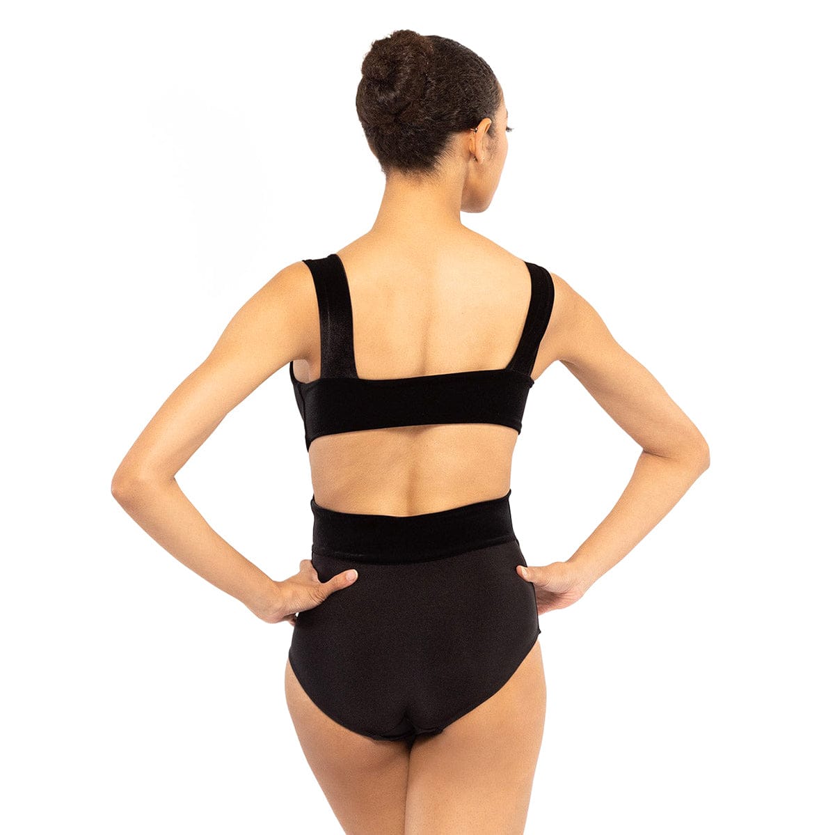 In the back, a beautifully open back design adds a touch of sophistication while allowing for freedom of movement and breathability during class or rehearsal.