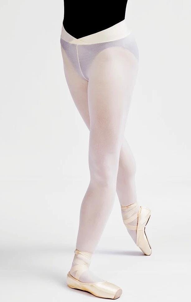 The Gaynor Minden Adult V-Waist Convertible Tights were inspired by the way dancers actually wear their tights - over their leotards.
