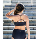 Featuring beautiful bright colors in a big curvy block pattern, the back is highlighted by a unique strappy design.