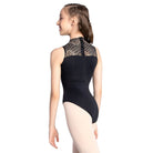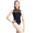 The So Danca Child Fayette Leotard is a stunning high-neck design featuring elegant lace detailing for a refined, standout look. Sheer lace accents the neckline, offering a delicate contrast to the sleek, solid microfiber body.