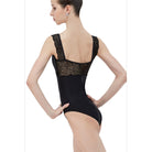 The elegant Wear Moi Child Erine Tank Leotard features a delicate scalloped trim lace on the straps, bust line, and back.
